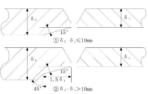 內(nèi)壁錯(cuò)邊量不宜超過(guò)壁厚的10%,且≯2mm;外壁錯(cuò)邊量≯3mm。
