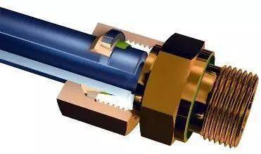 用鎖緊螺母和開(kāi)口壓緊環(huán)將管材壓緊于管件上的連接方式。特點(diǎn):卡套式管件密封面短,安裝方便簡(jiǎn)單,無(wú)需專(zhuān)用工具,可以拆卸,一般使用于2632以下規(guī)格的自來(lái)水和燃?xì)庀到y(tǒng)。
