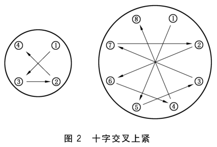 注:安裝橡膠接頭的螺栓應使用單頭螺栓(螺母朝向管道)穿過球體法蘭,旋轉(zhuǎn)球體法蘭對準管道主體法蘭十字交叉緊固(參考下圖禁錮順序)螺栓,初次承壓后(如: 安裝試壓等) 再次將螺栓重新加壓擰緊即可。。